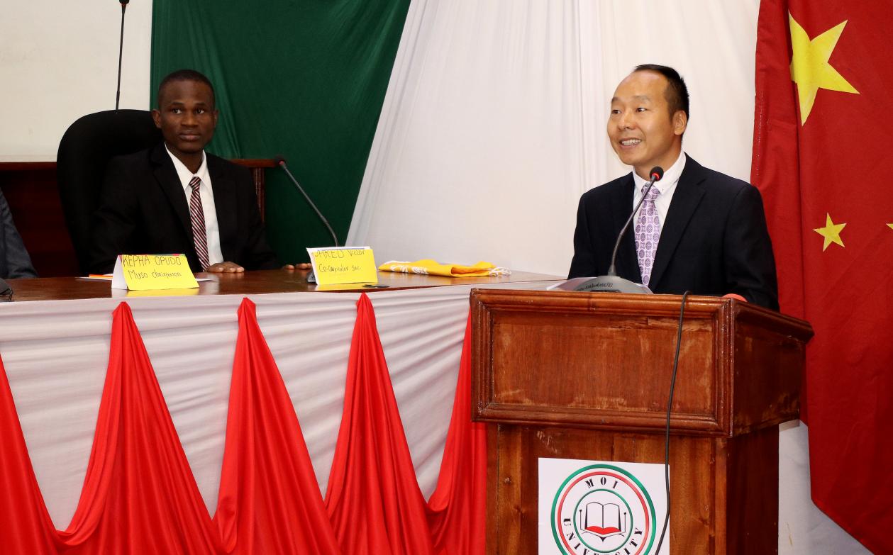 ▲莫伊大学孔子公司 中方经理 魏群山主持本次启动仪式