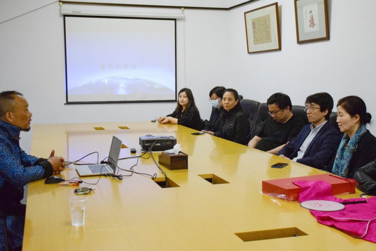 上海露香园顾绣研究院的黄翼飞经理和费菲一起带领回访小组参观了展厅,展厅中的顾绣作品精美秀丽,黄经理介绍,他们制作作品的方式,是由多个绣娘完成一幅作品,每个部分都由最擅长这种刺绣的绣娘完成,以臻完美。参观之后黄经理、费菲与回访小组进行座谈,黄经理讲述了自己在非遗商业化方面的经验,回访小组的老师、上海非遗保护中心钱主任就非遗的商业化路径做出了不同层面的解读与探讨。老师们对于顾绣的多样化呈现,如与服装和文创的结合等提出了建议,黄经理表示受到了很大启发。