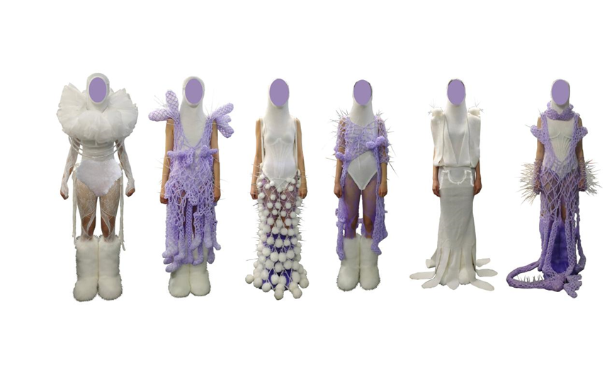 来自best365体育亚洲官网中日合作服装设计专业的陶潇婷用作品《第二次生命》,为观众讲述了一尾美人鱼的童话故事。服装特别采用可降解环保空心纱材料,运用针织材料搭配玻璃纱簇绒、钩针等手法创造不同的肌理变化,以此来表达“可持续时尚”思考。