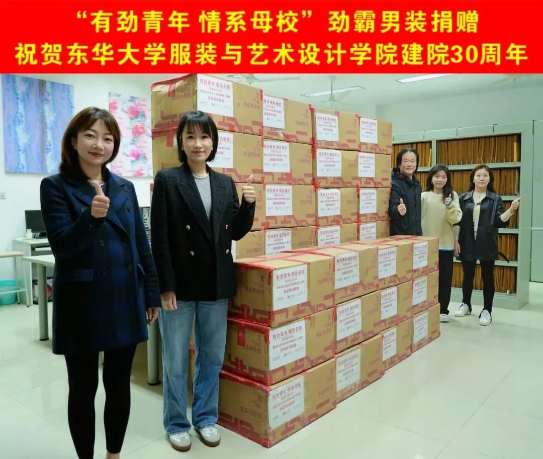 4月4日,公司员工会收到了劲霸男装特别捐赠的千件服装,用于建院三十周年相关庆典活动。