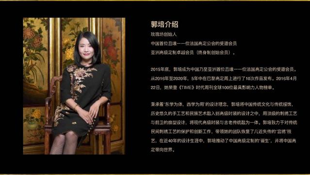 受聘仪式后,郭培教授以“走向世界的中国高定”为题,给员工们带来一堂鲜活生动、智慧满溢的人生大课堂。作为中国最早一代学习服装设计的员工,经历了下车间的技能学习,进公司的职业成长,她不忘初心、怀揣梦想、踔厉前行,1997年创立了自己的公司,立志做大美的设计。从最初寻找灵感做“挪用式”设计,到理解转化后的和谐设计,她讲述着自己的成长故事,也展现了一代人的奋斗经历。她专注做美到极致的设计,每一件服装都是精美绝伦的艺术作品,她的专注和坚持让她以中国高定设计师的身份骄傲地站在世界高定服装的舞台上,连续五年受邀在巴黎高定周上做了10次作品发布,推动中国高级定制的诞生,并将中国高定带向世界。讲座中,郭培教授详细介绍了在巴黎高定周上发布的10个系列作品,作品背后的故事、不为人知的辛捞,以及一路走来的人生感悟。