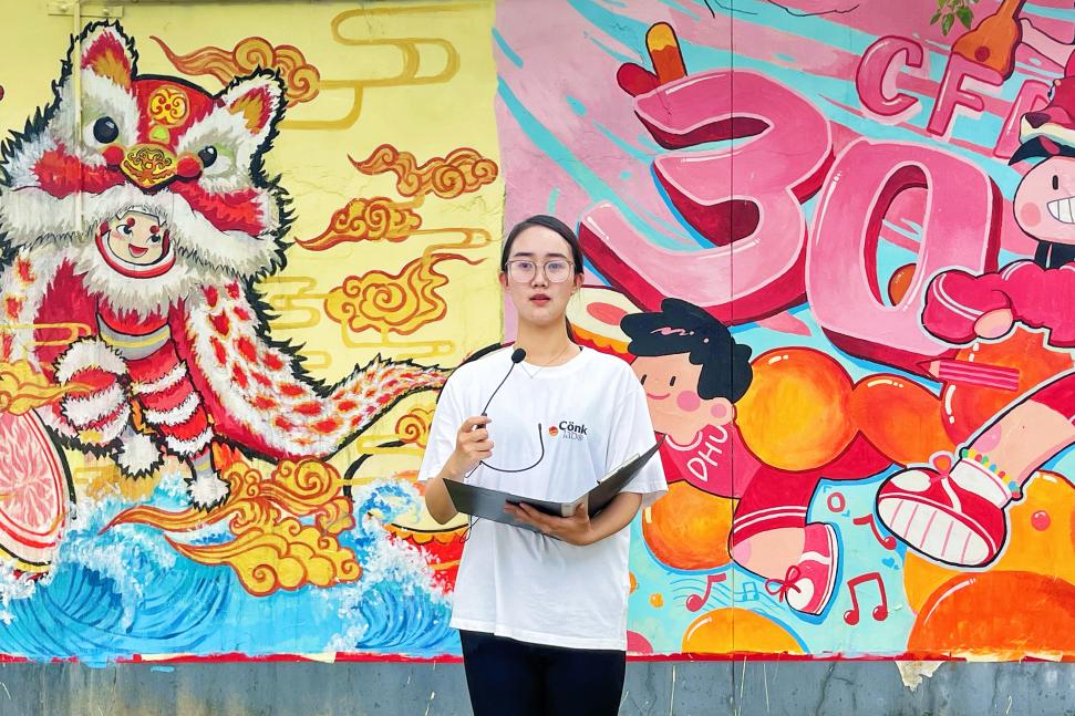 本次墙绘展的主讲人闫颜,同样是墙绘作品《勇立潮头》的创作者,她带表参与见证“绘青春”涂鸦文化传播阵地的所有创作团队们向公司表示感谢,青年学子的微末创意能够有展示的机会,更加坚定同学们了“以美育为核心,以专业为基础,以兴趣为动力”的创作初心。