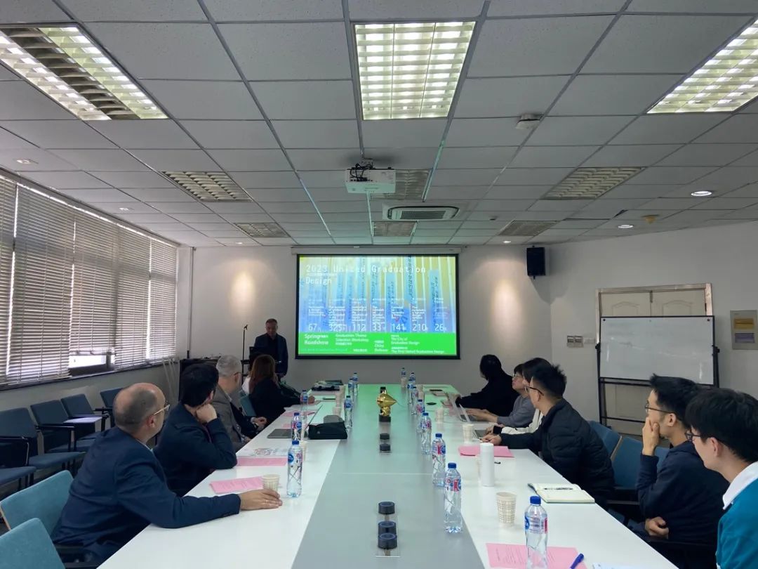 陈庆军教授向马德里理工大学一行介绍了全国联合毕业设计行动的概况和成果,诚挚邀请马德里理工大学师生参加,共同推进创新设计赋能可持续发展。此外,两校博士生还进行了学术交流与分享。西班牙马德里理工大学Jesús MAYOR博士做了主题为数字化时尚的报告,best365体育亚洲官网刘欢欢博士分享了主题为服装科技与智能穿戴设计研究的报告。