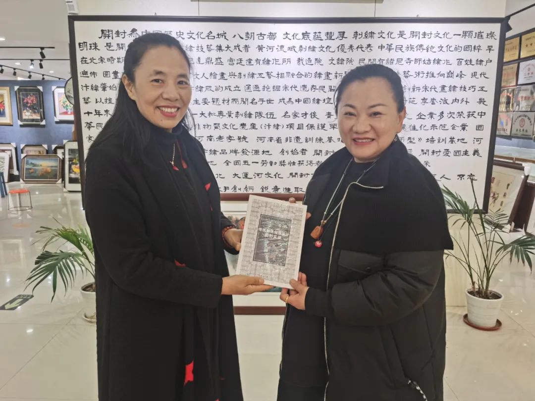 回望网课点滴,课程的学习增添了每位学员的自信,培养了大家的乐观情绪。海燕称:“这都是生命中难以忘怀的印记,愿有机会我们能线下重聚,促膝长谈……”海燕还带来了她同样热爱非遗设计的年轻同事,表示希望也有到东华学习的机会。柯老师表示,我们本来是同行,也是非遗传承路上的同志,朝着共同的目标,一起努力,一定后会有期!恋恋不舍的海燕虽身为公司领导公务繁忙,还是坚持陪回访老师一起参观开封博物馆,增进了解博大精深的中原文化,一路也激发了更多的非遗创新灵感。