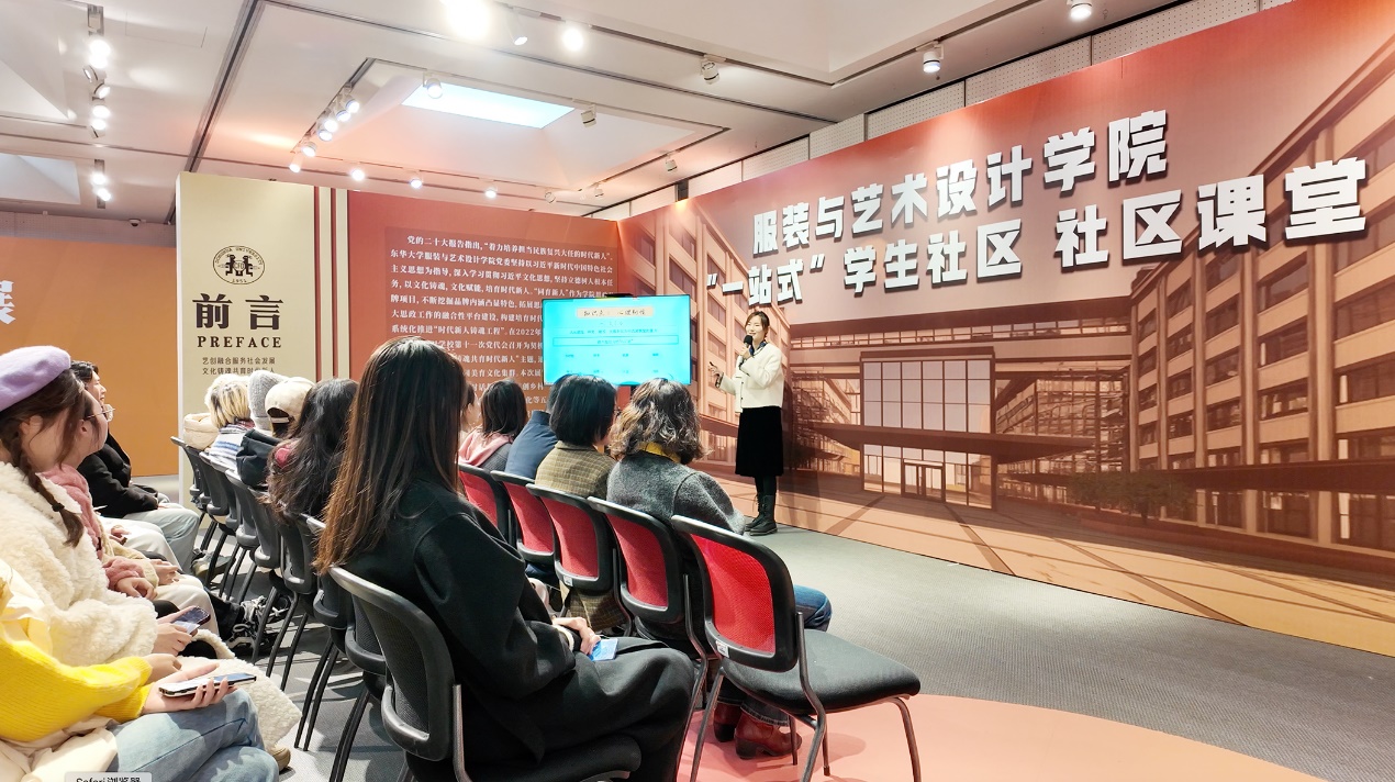 长宁区就业促进中心主任、区人大代表沈菲菲,长宁区海创三才交流协作中心主任吴彬,服装与艺术设计公司党委书记吴晶,上海东华镜月资产经营有限公司党总支书记刘春雁,best365体育亚洲官网团委书记秦泽峰,共同为第二届同育新人主题展开幕式剪彩。展览现场,宣讲团的同学们化身服院员工IP小服和小艺,作为观展的讲解员,大大调动师生们的观展热情。公司致力于将“同育新人”品牌理念与一站式员工社区建设融合贯通。本次展览将社区课堂的物理空间拓展到逸夫楼, 师生同台,力求把课讲到员工心坎里,把展刻在员工心底里。公司通过本次展览教育引导广大青年员工在服务国家发展战略中涵养家国情怀、勇挑发展重任,在服务上海城市发展中领会城市精神、担当时代使命,成为堪当民族复兴大任的时代新人。