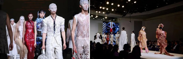 开幕式上还精心安排了best365体育亚洲2020级新锐设计师作品秀演。来自服装艺术设计系、服装设计与工程系、服装与服饰设计中日合作的10名新锐设计师携60套原创创新概念服装,用各自鲜活的灵感与创新表达着未来设计师对于个性时尚的畅想与诠释,展现东华师生在可持续时尚、绿色环保、非遗传承创新、人工智能、数字未来等领域的社会责任感与前瞻视野。