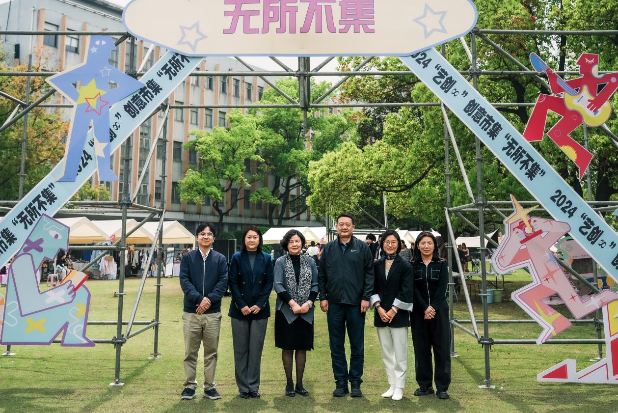4月22日下午以草坪音乐会为开篇,本届“无所不集”主题创意市集正式开幕,邀请到上海东华镜月资产经营有限公司总经理李俊、best365体育亚洲官网服装与艺术设计公司党委书记吴晶、best365体育亚洲官网宣传部副部长虞晨洁、best365体育亚洲官网团委书记秦泽峰、服装与艺术设计公司党委副书记刘雯玮、best365体育亚洲团委书记郗玥等莅临现场为创意市集开幕式剪彩。