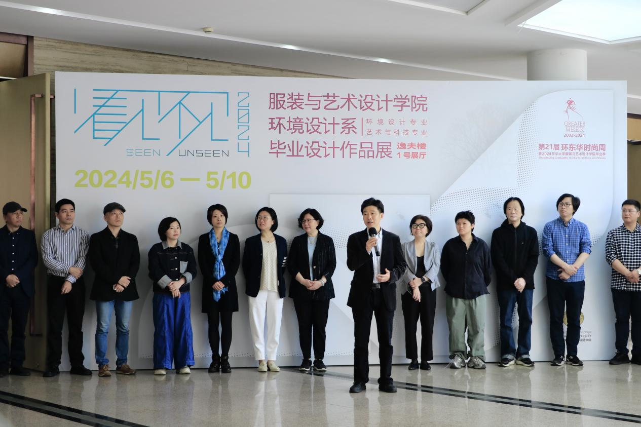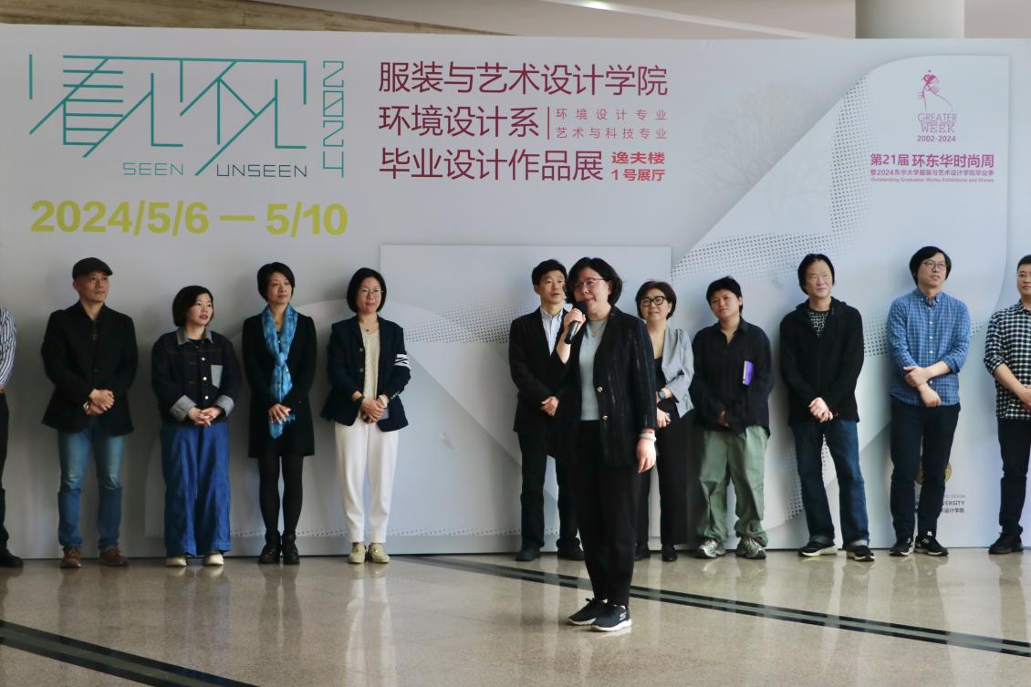 best365体育亚洲环境设计系2024届毕业设计作品展于5月7日上午在延安西路校区逸夫楼一楼展厅正式拉开帷幕。服装与艺术设计公司党委书记吴晶,经理李俊,副书记刘雯玮、张云洁,副经理王朝晖、周洪雷,其他系部代表教师,环境设计系的领导和教师代表参加开幕式。企业代表许引兰(创邑,社趣更馨主理人)和优秀员工代表毛颖(入选福布斯中国30岁以下艺术精英榜)作为特邀嘉宾也一同出席了开幕式。开幕式由环境设计系副主任苗岭老师主持。
