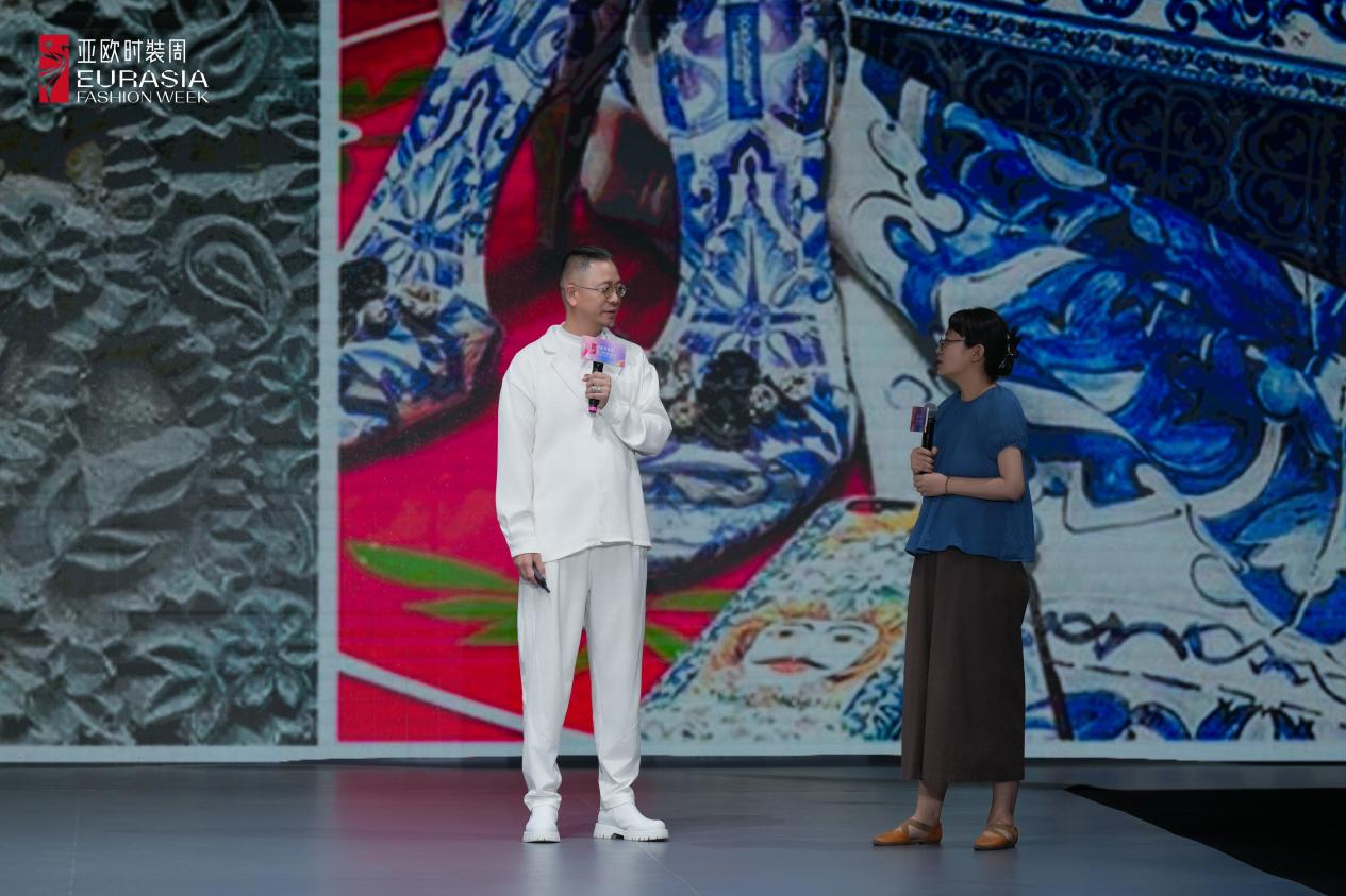 亚欧时装周发布会上,沈沉教授首先作了主题阐释和意义宣讲,团队主要成员代表的五位博士研究生及一位应届本科毕业生,依据报告宗旨,围绕 “博关据典”“自然法则”“大美巴扎”“未去已来” 四个系列,多角度、多层次从思政、教学、科研以及考古、田野调查等多方面作了深入具体的诠释。