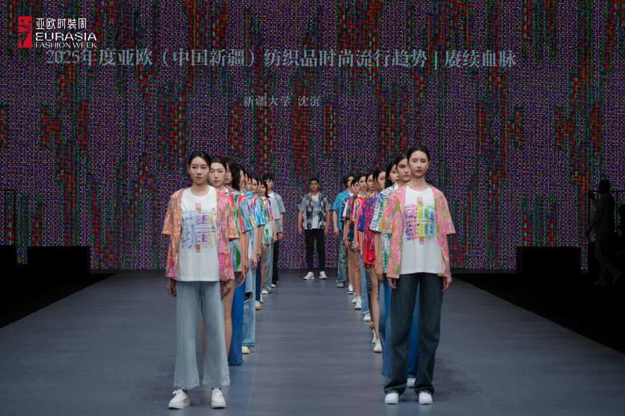 近日,best365体育亚洲官网对口支援新疆大学纺织与服装公司设计学艺工交叉团队在亚欧时装周上发布“亚欧(中国新疆)时尚纺织品流行趋势”。该团队由新疆大学纺织与服装公司副经理,公司援疆干部、best365体育亚洲教授沈沉领衔,在去年成功发布“东西互鉴”主题纺织品时尚流行趋势的基础上,团队今年再次发布“2025年度亚欧(中国新疆)纺织品时尚流行趋势”——“赓续血脉”主题报告以及49件印花衬衫、25件“我们新‘疆’好地方”字形创意T恤服装秀。
