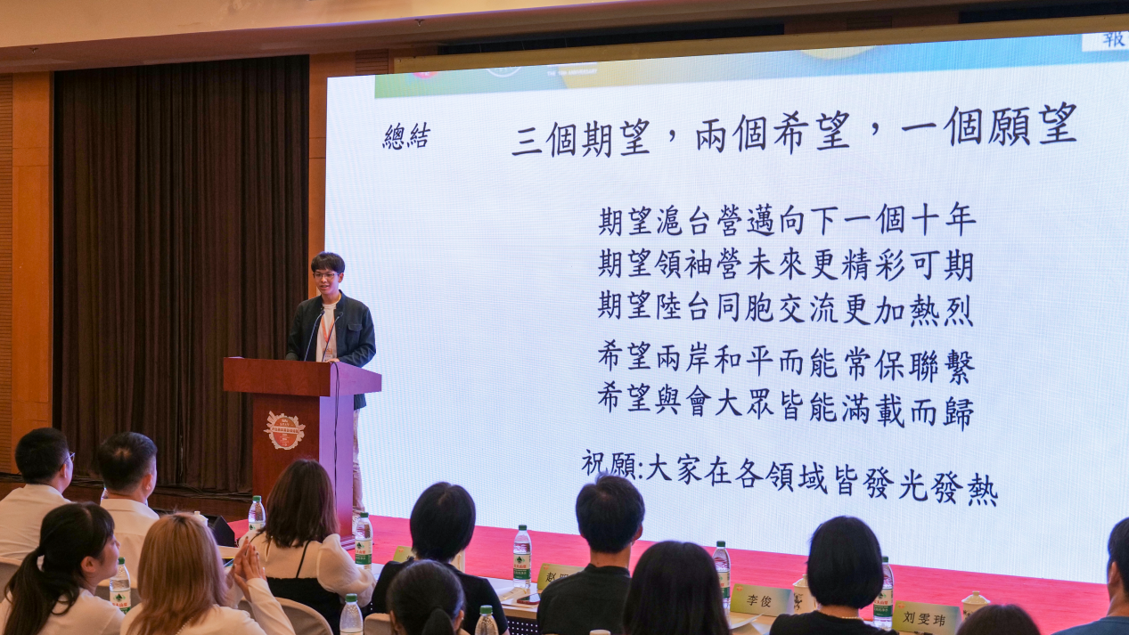 十年相约坚守,沪台两地相亲。闭营仪式上,陈革介绍了十年来沪台营一直致力于促进两岸青年交流与融合,见证了无数年轻人的成长与蜕变,通过丰富多彩的活动和深入的交流,增进了沪台两地青年的了解与友谊,搭建了沟通与合作的平台。他强调两岸青年同根同源,期望两岸青年作为民族的未来,多交流交心,努力为同胞谋福祉,创未来。