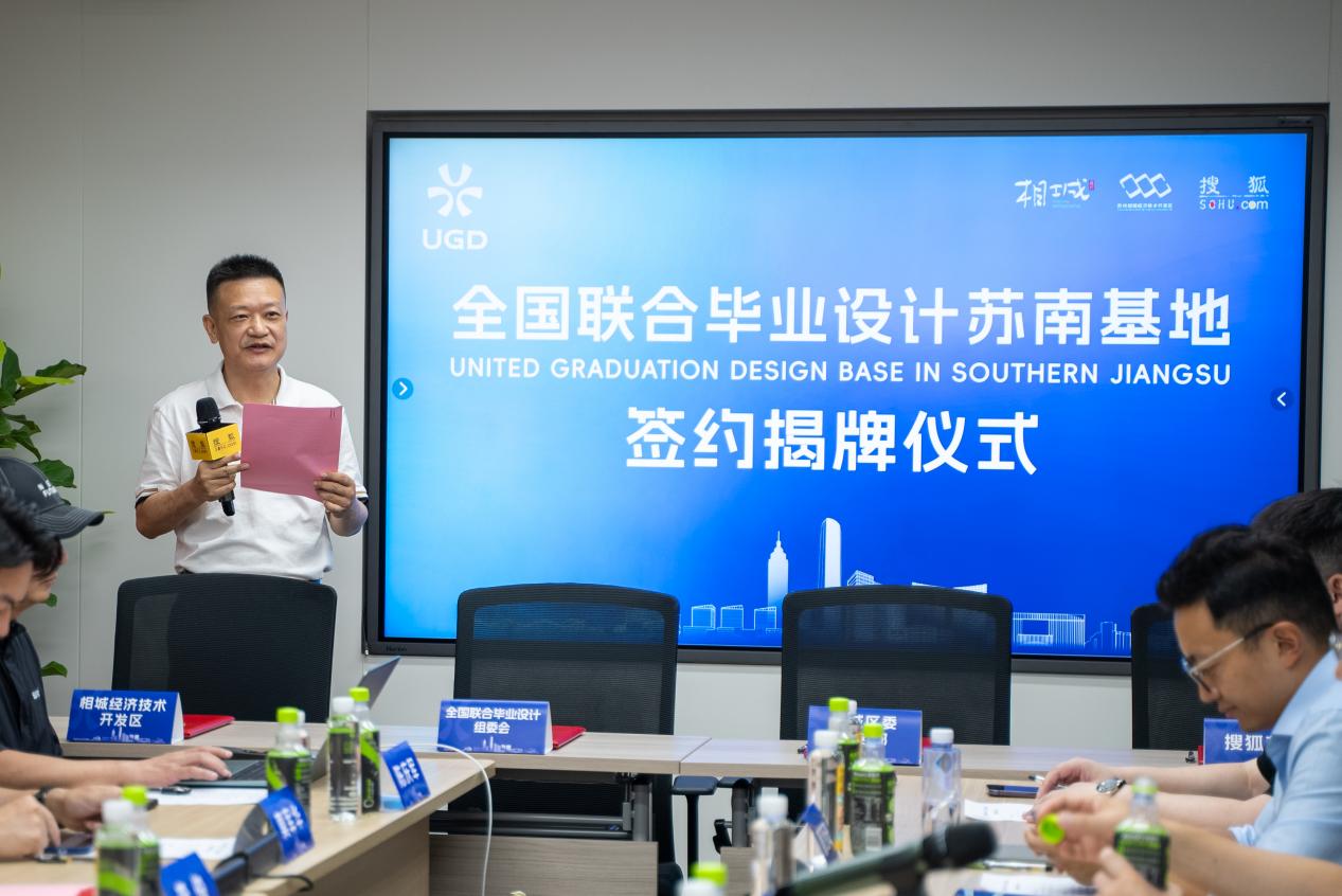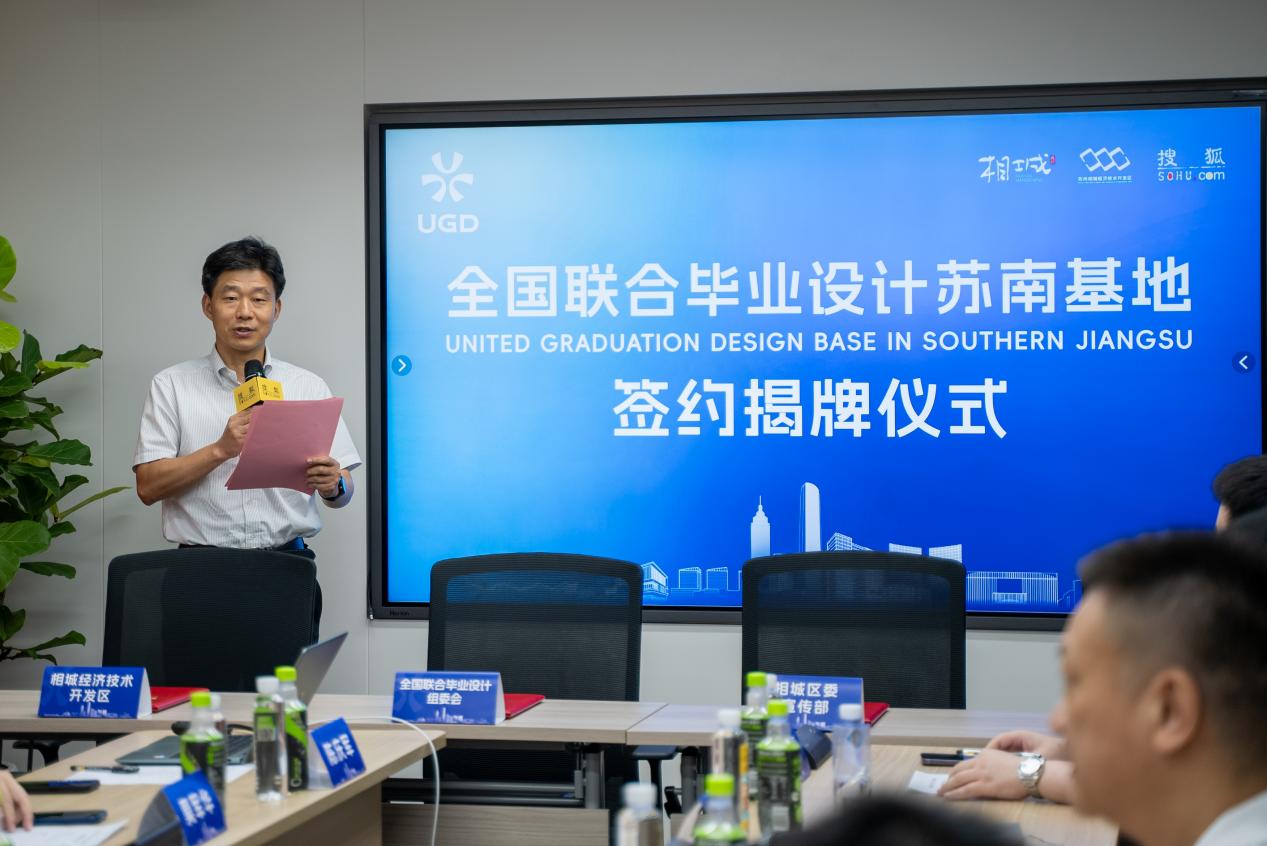仪式上,相城经开区党工委委员、管委会副主任丁俭对李俊经理一行的到来致以了诚挚的欢迎。同时表示,当前相城区正站在新的历史起点上,积极贯彻落实习近平文化思想,全力推进《加快建成社会主义文化强区行动方案》的实施,致力于将相城打造成为文化繁荣、创新涌动的现代化强区。全国联合毕业设计(UGD)苏南基地的成立,将对增强相城经开区文化活力、带动美学升级以及为“美丽三城”建设提供文化支持的重要意义。