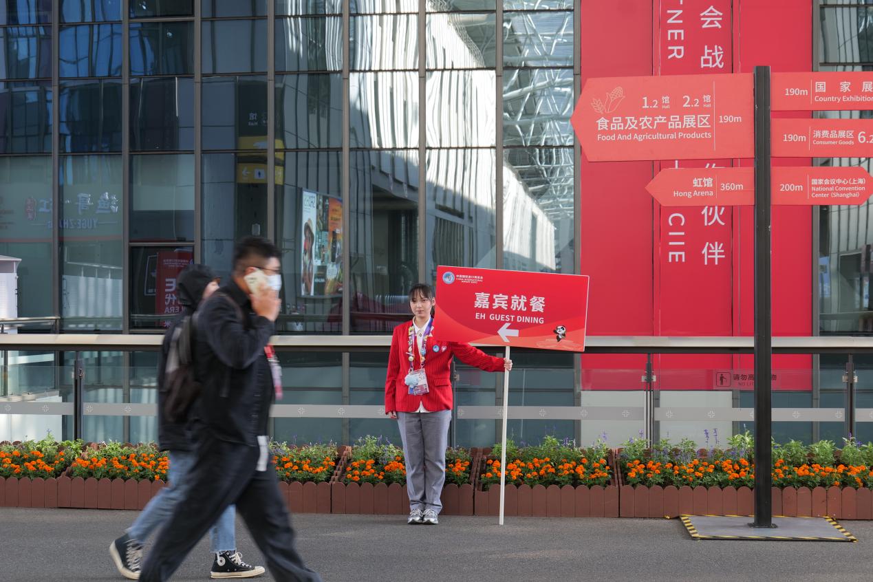 公司的8位“小叶子”在进博会期间负责重要嘉宾接待工作,引领嘉宾前往论坛会场和就餐区域,在此期间完成计数、指引及人员核查,并在相关论坛结束后引导嘉宾快速准确地分流至停车场,同步统计协调场内外车辆,在进博一线担任着至关重要的角色。