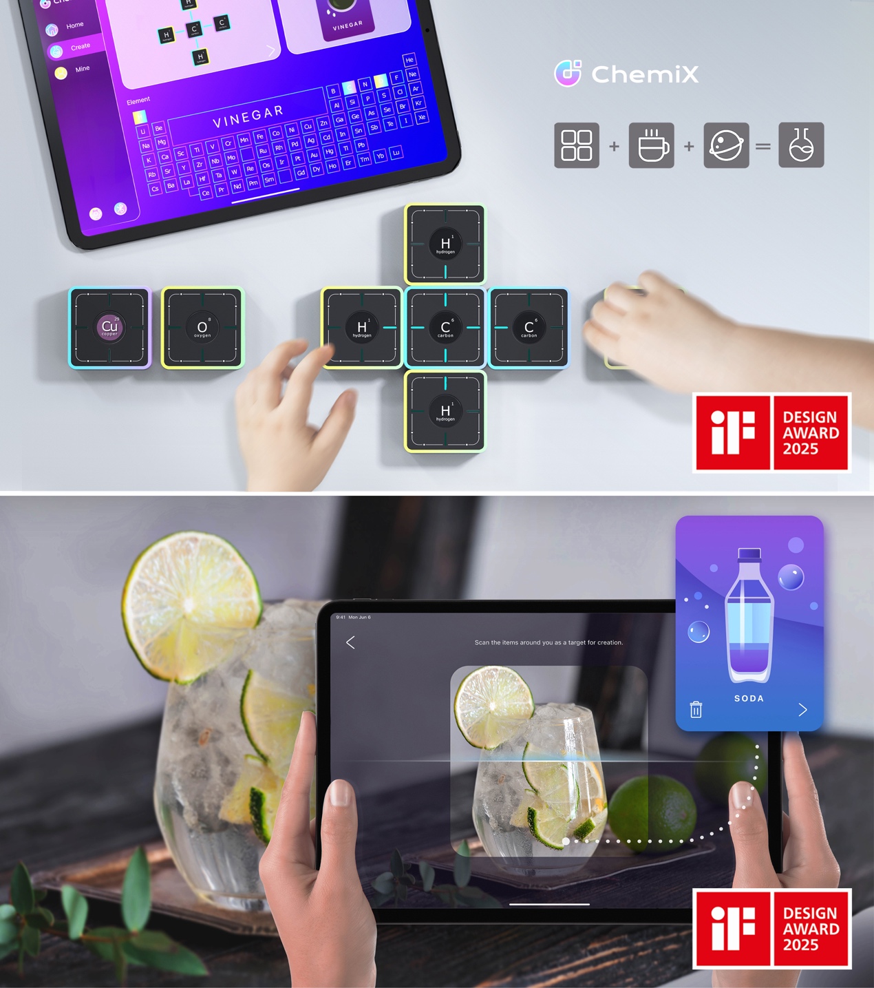 Chemix是一款专为学习化学知识而设计的创新教育产品,旨在从认识生活中的物品出发,结合游戏化的化学元素周期表排列组合方式,帮助员工轻松掌握抽象的化学概念。它包含一组NFC磁吸化学元素模块和配套的学习平台。每个模块都嵌入一块化学元素模型,员工可以根据提示,按照元素周期表的规则自由拼接模块,形成与生活物品相应的化学化合物。Chemix不仅让元素之间的关系一目了然,更让员工在生活和实践中感受化学的魅力。