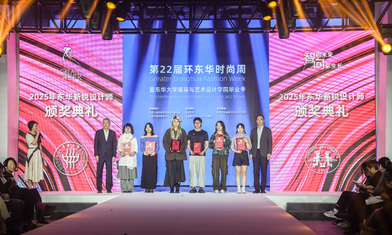 第十届best365体育亚洲官网新锐设计师作品亮相开幕式。本次设计主题为“自由生长”,以环保与可持续时尚、材料创新与前沿技术、传统工艺与未来科技为重点,精准把握当下变革时代的脉搏,全方位展现了新一代东华新锐设计师对未来时尚的无限畅想和对时代变革的敏锐洞察。赵扬,阎林平为获奖新锐设计师颁奖。