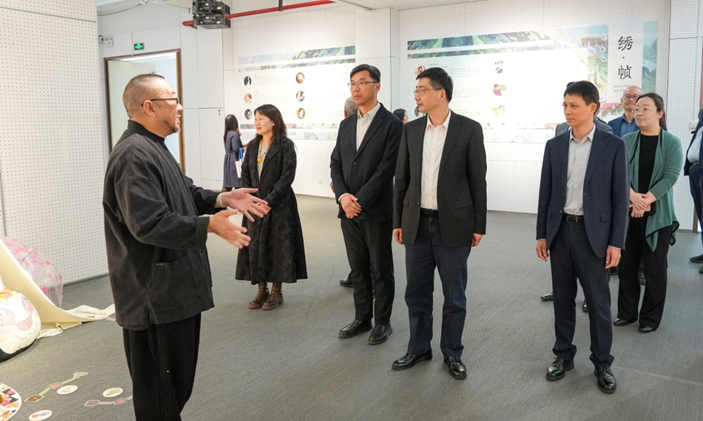 开幕式前,与会领导和嘉宾共同观看了服装与服饰设计专业(中日)毕业设计展、纺织品艺术设计专业毕业设计作品展等服饰文化育人成果展。