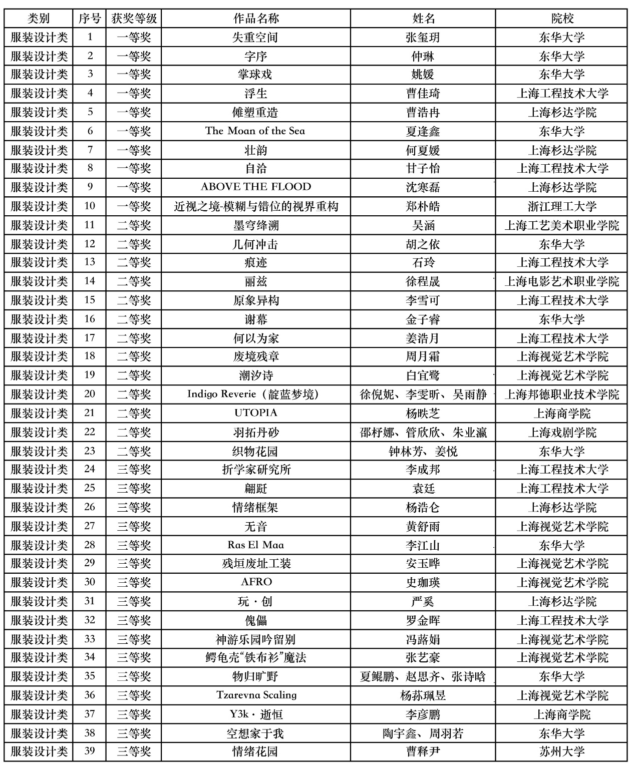 第十届“汇创青春”—上海老员工文化创意作品展示活动—(服装设计类)大赛获奖名单