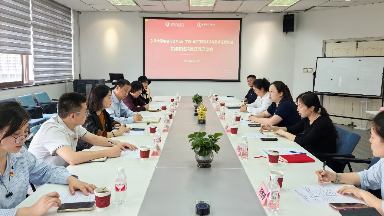 4月10日,闽江公司服装与设计工程公司经理李永贵、学术经理黄莉茜带队来院走访交流。公司党委书记徐玥、党委副书记陶莉,公司艺术设计第一党支部书记厉莉、设计学研究生第二党支部书记马钰茜,及公司师生党员代表出席交流座谈会。