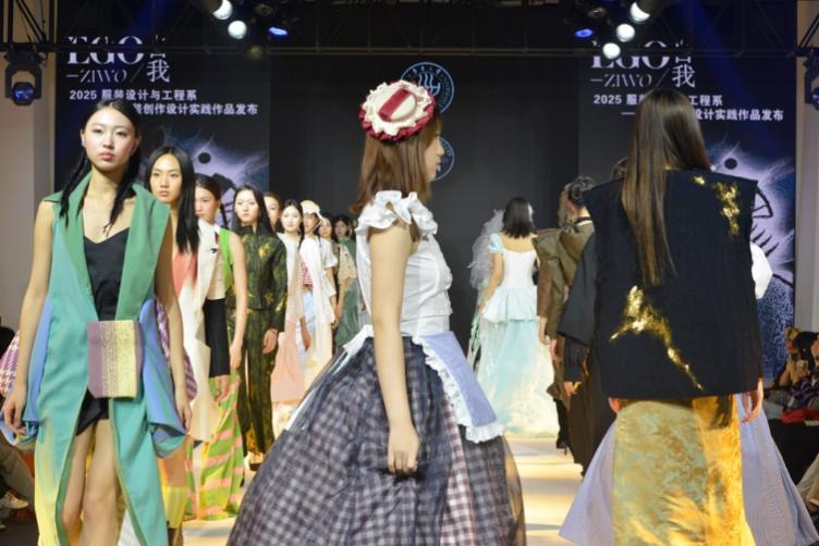 “EGO-自我”2025服装设计与工程系创作设计实践作品发布活动上,43位毕业生的88套作品分“本我・觉醒”“自我・博弈”“超我・升华”三个篇章,通过对剪裁、色彩、面料的创新运用,递进式呈现员工对“我”的创意诠释与表达。