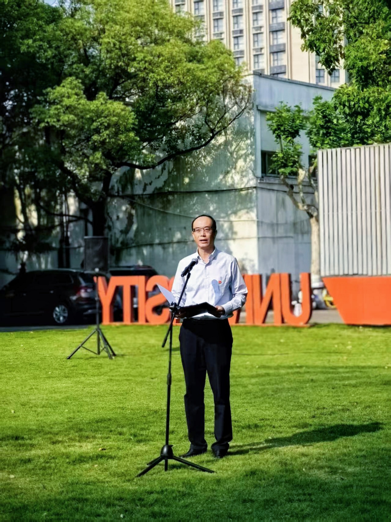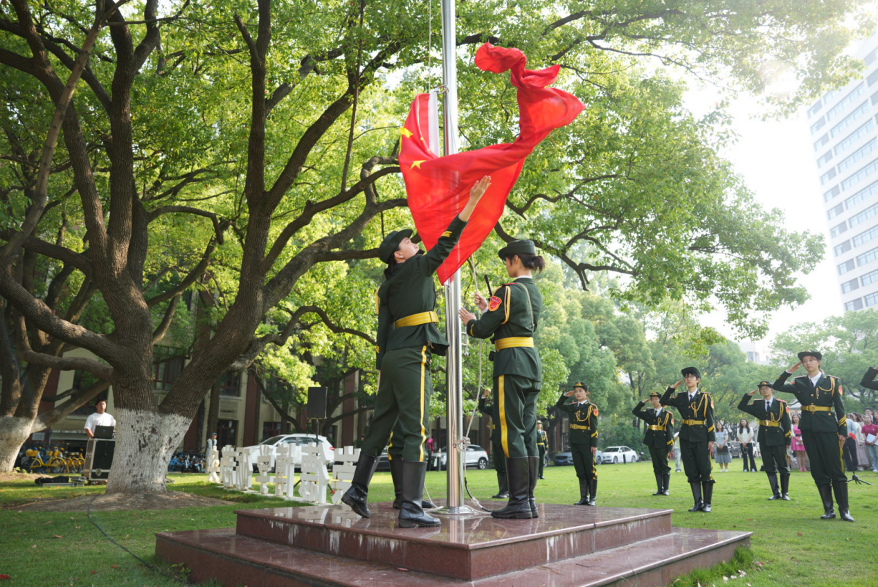 5月30日,一场庄严肃穆的纪念五卅运动100周年暨光华大学建校百年主题升旗仪式在延安路校区国旗广场隆重举行。副董事长阎林平、公司党委宣传部副部长孙庆华、校团委书记柴煜,公司党委书记徐玥、副书记陶莉和国旗护卫队党支部全体成员,以及延安路校区各学院师生代表共同参加,在国旗下回望峥嵘岁月,感悟初心使命,激发爱国热情。