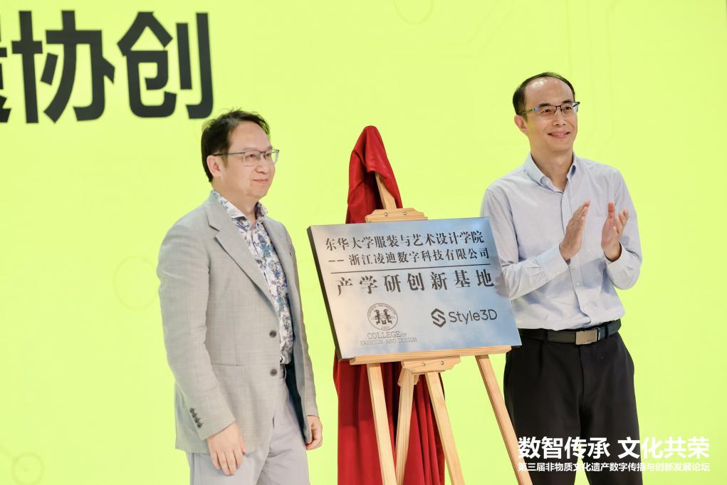 “数创非遗协创”环节中,副董事长阎林平与凌迪科技Style3D创始人刘郴共同为校企合作“产学研创新基地”揭牌,正式启动校企共建非遗数字化创新联合体。