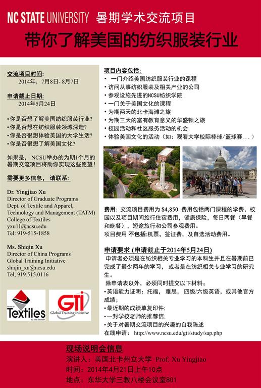 2014年美国北卡莱罗纳州立大学暑期交流项目
