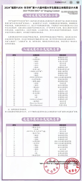 2024“福恩FUEN·东华杯”第十六届中国老员工服装立体裁剪设计大赛入围决赛院校作品公...
